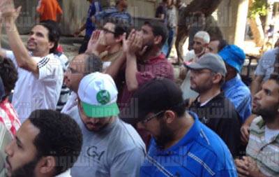 وبينما حمل المتظاهرون علم مصر، مرددين هتافات تطالب بعودة الرئيس المعزول، اصطف عشرات المتظاهرات في الصفوف الخلفية للمتظاهرين، وسط حماية العشرات من شباب الجماعة لتأمين المسيرة.