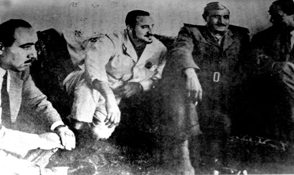من اليمنين: أنور السادات وعبد الله السلال وعبد الرحمن البيضاني والضابط المصري كمال رفعت