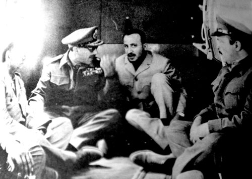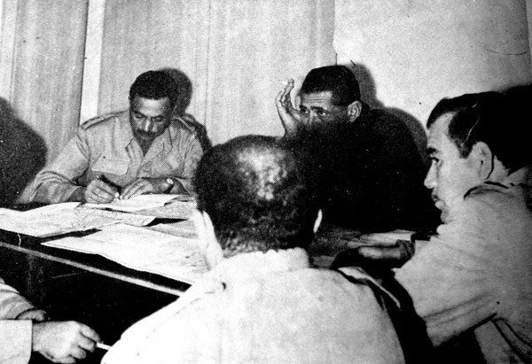 العقيد عبد المنعم خليل ينظر في أوراقه وبجواره المشير عامر