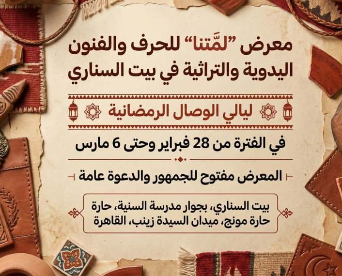 ثقافة + السيرة الهلالية في مترو الأنفاق.. تفاعل واسع مع مبادرة الثقافة لدمج الفن في الفضاء العام لاقت مبادرة وزارة الثقافة لدمج الفنون في الفضاءات العامة اهتمامًا كبيرًا من الجمهور وتفاعلًا واسعًا على مواقع التواصل الاجتماعي، خاصة مع انطلاقها ... المزيد بداية من 28 فبراير.. افتتاح معرض لمتنا للحرف والفنون اليدوية والتراثية في بيت السناري كتب للأطفال عن رمضان.. حكايات صغيرة تصنع ذاكرة كبيرة الطريق لا الجبل.. من ابن بطوطة إلى ابن فطومة