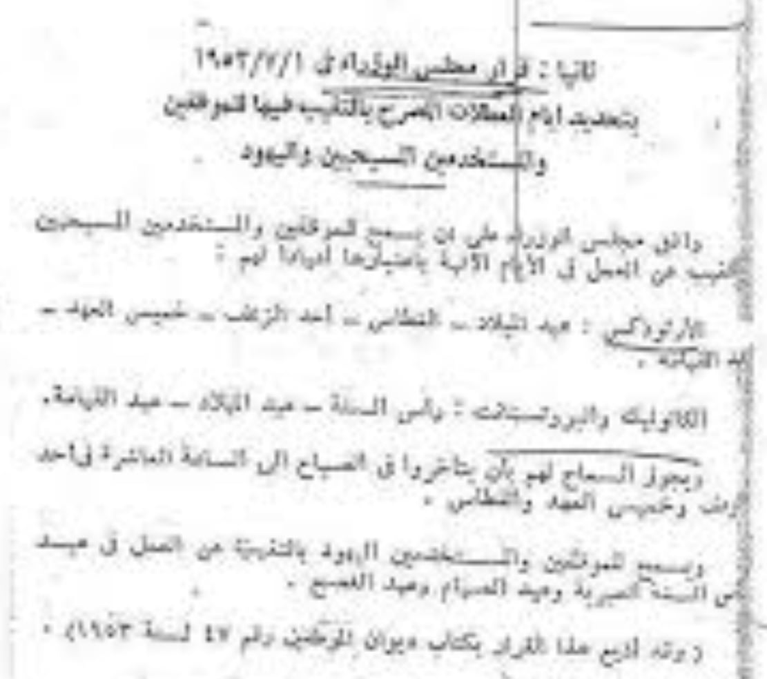 لقد صدر بالفعل هذا القرار من مجلس الوزراء ولكن منذ 72 عامًا وتحديدًا في أول يوليو 1953 بعنوان "تحديد أيام العطلات المصرح بالتغيب فيها للموظفين والمستخدمين المسيحيين واليهود" حيث قسّم المسيحيين إلى مجموعتين: أرثوذكس – كاثوليك وبروتسانت، وقرر تمتع الموظفين اليهود بثلاثة عطلات دينية: رأس السنة العبرية وعيد الصيام وعيد الفصح.
