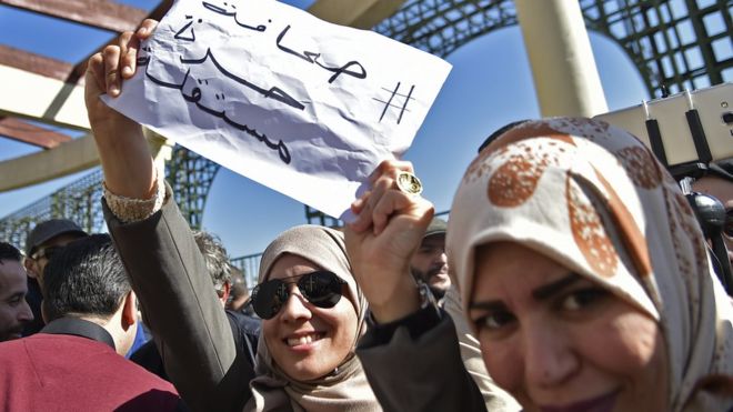 وتجتاح الجزائر موجة من التظاهرات، احتجاجا على إعلان الرئيس بوتفليقة عزمة الترشح لولاية رئاسية خامسة، على الرغم من أنه يجلس على كرسي متحرك، ولا يظهر علنا إلا نادرا، وذلك منذ عام 2013، حين أصيب بسكتة دماغية.