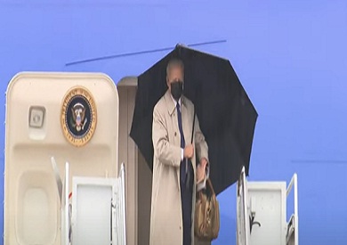 ويظهر مقطع فيديو تم التقاطه من أسفل الدرج أن الرئيس الأمريكي كاد أن يسقط بعد أن فوت درجًا، وهو يصعد إلى الطائرة ويحمل معه حقيبة ومظلة تحت المطر الغزير، لكنه تدارك الموضوع وحافظ على توازنه.