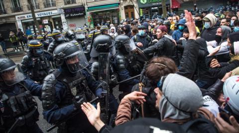 اشتبكت الشرطة الفرنسية مع متظاهرين في التجمعات الجماهيرية التقليدية في عيد العمال في باريس اليوم الأحد، مع تحطيم نوافذ وإلحاق أضرار بمؤسسات تجارية .