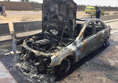 تم استدعاء خبراء المفرقعات والحماية المدنية لفحص السيارة وبيان أسباب الحريق وتحرير محضر بالواقعة.