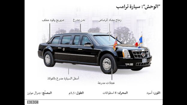 وتتسع سيارة الليموزين الرئاسية لسبعة أشخاص على الأقل، وتضم على متنها مجموعة متنوعة من الإمدادات الطبية، بما في ذلك، ثلاجة مملوءة بدم من فصيلة دم الرئيس، بحسب شبكة "إن بي سي".