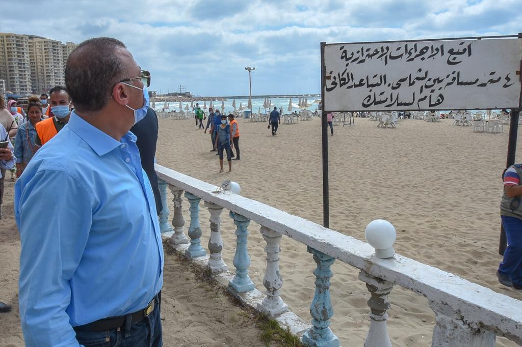 واستفسر من رواد الشواطئ والمصطافين، عن مدى توافر الخدمات لهم، مؤكداً أن المحافظة حريصة على تقديم كامل الدعم والعمل المستمر على زيادة الخدمات المقدمة لمواطني وزائري الإسكندرية.