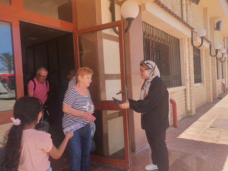 وأهدى فريق هيئة تنشيط السياحة بالمحافظة، السياح الكتيبات التعريفية السياحية للمحافظة.