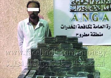 وفي مطروح تمكنت الإدارة العامة لمكافحة المخدرات بالتنسيق مع قطاع الأمن العام ومديرية الأمن من القاء القبض على عاطل وبحوزته (200طربة لمخدر الحشيش وزنت 35 كيلو ، هاتف محمول ، مبلغ مالى ) . وتم إتخاذ الإجراءات القانونية اللازمة حيال كل واقعة على حدى وإحالتها للنيابة لمباشرة التحقيقات.