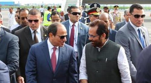 وسيجري الرئيس السيسي مباحثات مهمة في العاشرة من صباح الجمعة مع رئيس الوزراء الهندي ناريندرا مودى تتناول سبل تطوير التعاون الثنائي في مختلف المجالات، ولاسيما الاقتصادية والاستثمارية والتنموية في ضوء التجربة الهندية المتميزة في تحقيق التنمية الشاملة، بالإضافة إلى عدد من القضايا ذات الاهتمام المشترك في مقدمتها قضية الشرق الأوسط، وجهود مكافحة الإرهاب.