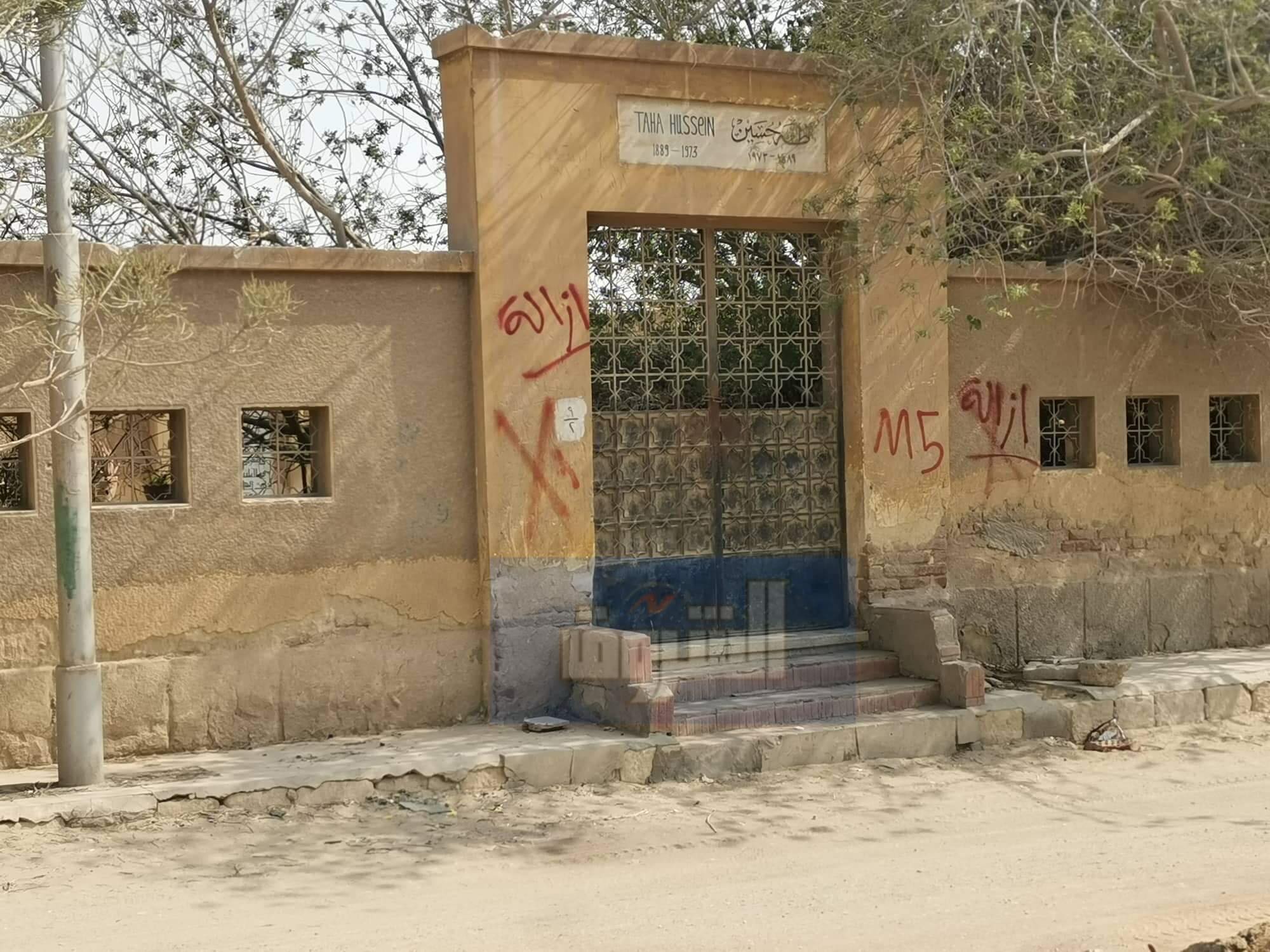 حيث أضيفت كلمة "إزالة" بالخط الأحمر إلى علامات إكس حمراء على جانبي مقبرة طه حسين، وعلى المقابر التي تليها في نفس الصف.
