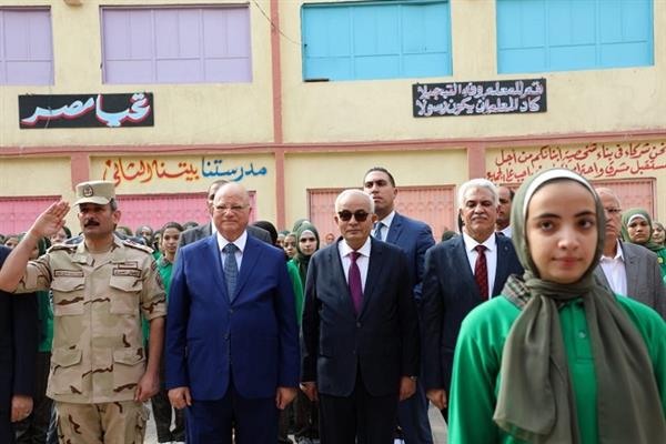 حضر الدكتور رضا حجازى واللواء خالد عبد العال، طابور الصباح وتحية العلم، وقدما التهنئة لجميع الطالبات والمعلمين والعاملين بالمدرسة بالعام الدراسى الجديد.