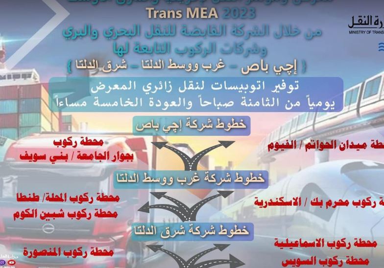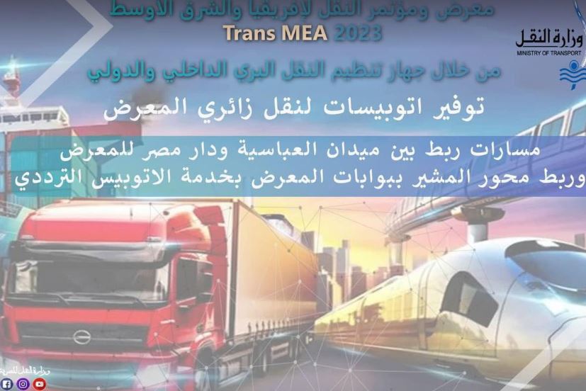 أكدت وزارة النقل، أنه تم التنسيق من خلال جهاز تنظيم النقل البري الداخلي والدولي لتوفير وسائل نقل جماعي لنقل رواد معرض ومؤتمر النقل الذكي للشرق الأوسط وأفريقيا TransMEA2023، المقرر انعقاده من ٥ إلى ٨ نوفمبر الجاري بمنطقة أرض المعارض بالتجمع.