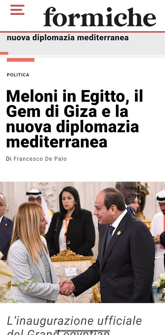 وفي السياق ذاته، قالت مجلة "فورميكي" الإيطالية المتخصصة في التحليلات السياسية، إن الرئيس عبد الفتاح السيسي أدرج حدثا عالميًا جديدًا على جدول أعمال الدولة بعد اتفاقيات غزة في شرم الشيخ.