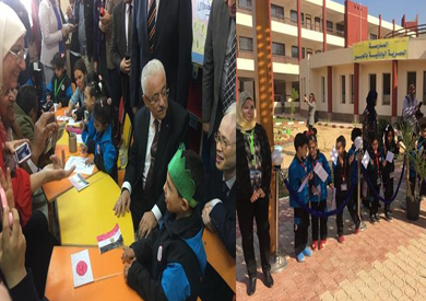 واستقبل الوزيران في فناء المدرسة تلاميذ رياض الأطفال حاملين أعلام مصر واليابان، وتفقد الوزيران فصول المدرسة وقاما ببعض الأنشطة مع التلاميذ.
