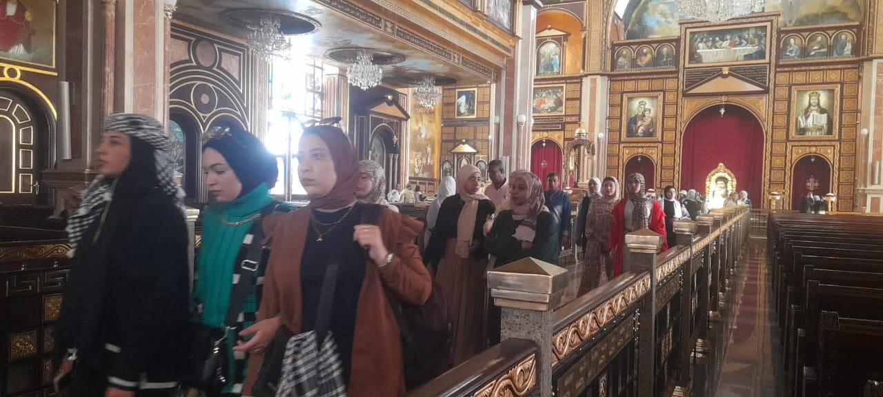 بدأت الجولة بزيارة كنيسة السمائيين، بحضور الدكتورة دينا هويدي، مدير عام الإدارة العامة لثقافة المرأة والمدير التنفيذي لمشروع "أهل مصر للمرأة"، وتحدث خلالها ماجد ثروت، عن تاريخ إنشاء الكنيسة، موضحا أن حجر الأساس وضعه البابا شنودة الثالث عام 2002، واستغرق البناء حوالي 8 سنوات، بواسطة 400 فرد ما بين مهندسين وعمال بناء وغيرهم.