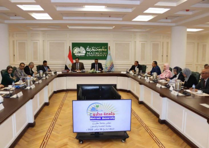جاء ذلك خلال إنعقاد مجلس الجامعة رقم 95 ، برئاسة الدكتور عمرو المصري القائم بعمل رئيس الجامعة، وبحضور خالد شعيب محافظ مطروح،و الدكتور محمود عباس مستشار رئيس الجامعة والمشرف على قطاع التعليم والطلاب،وذلك بمقر الحرم الجامعي بمدينة مرسى مطروح.