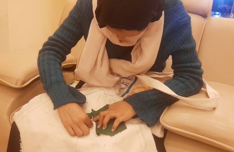 واختتم اليوم مع ورشة التطريز، دربت خلالها سليمة صالح موسى المشاركات على كيفية إمساك الإبرة وكيفية نقل التصميم على القماش.