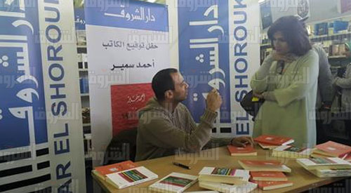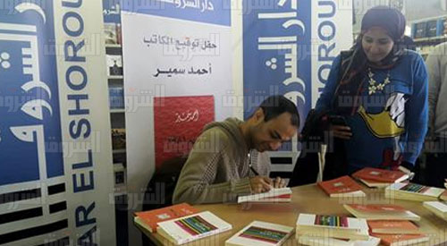 بمعرض القاهرة الدولي للكتاب، عصر اليوم الثلاثاء، أقبل عدد من زوار المعرض، على جناح دار الشروق، لحضور حفل توقيع كتاب أحمد سمير الأحدث "أحمد 1981"، وقاموا بالتقاط الصور الفوتوغرافية معه، فيما قام هو بتوقيع نسخ من كتابه لهم.