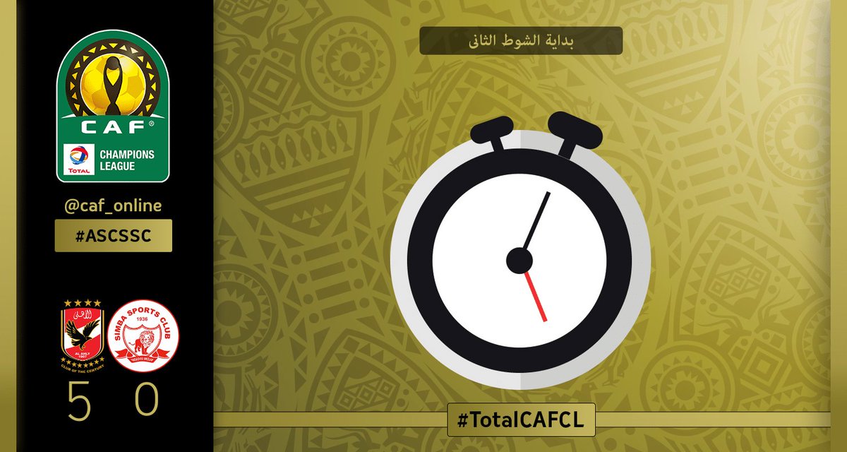 - مرور نصف ساعة من زمن الشوط الثاني والأهلي متقدم على سيمبا التنزاني بخماسية نظيفة