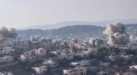 وأظهرت مشاهد متداولة، تفجيرات متزامنة ضربت مخيم جنين، وسط تصاعد كثيف لأعمدة الدخان في المخيم.