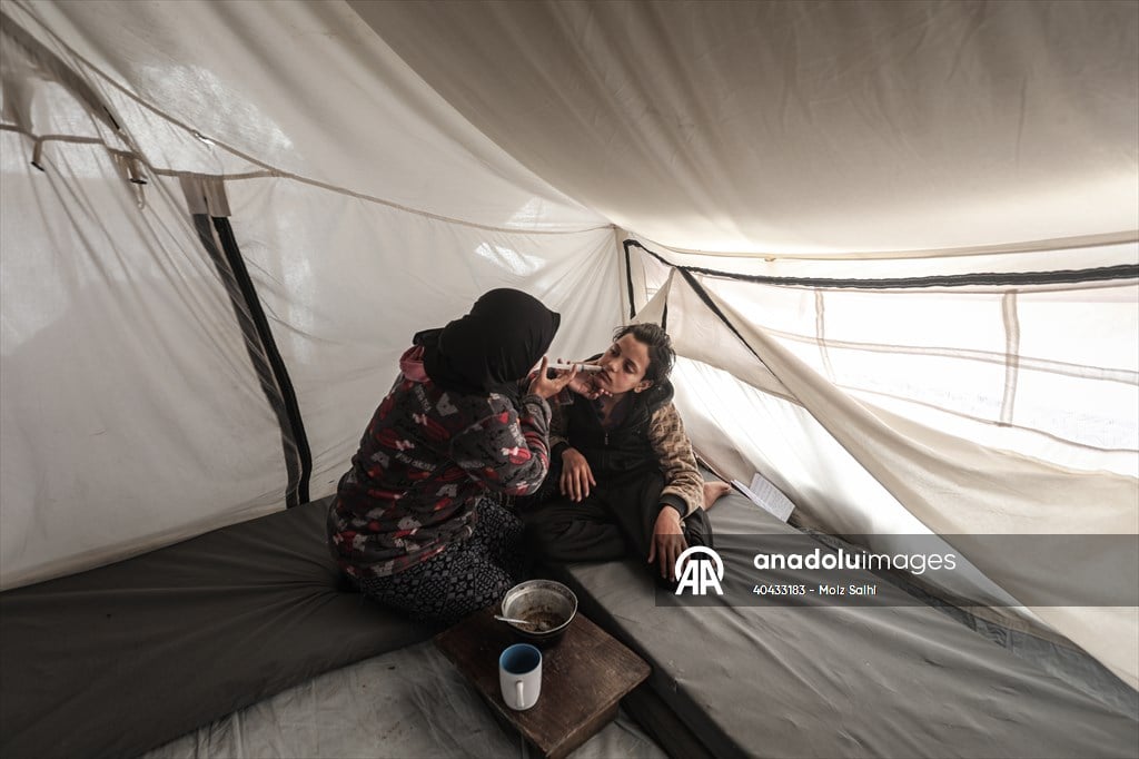 وتقول سهام، إن طفلها بات عاجزا عن ممارسة حياته اليومية، ولا يستطيع تناول الطعام الصلب، ما يضطرها إلى طحن بعض الأطعمة وإطعامه عبر الحقن، مع اعتماده بشكل شبه كامل على السوائل.