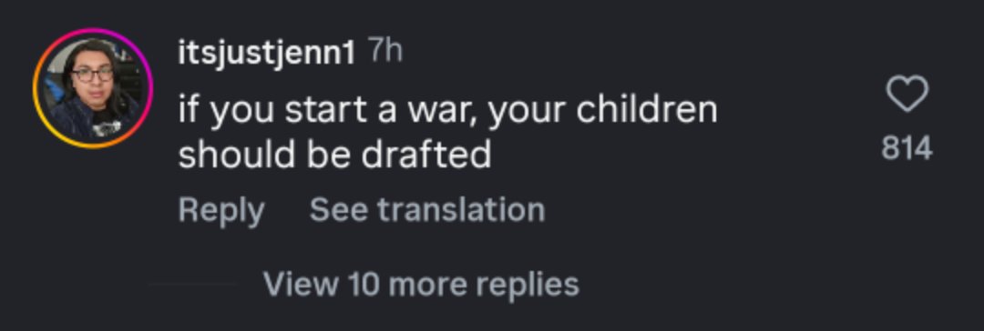 المستخدمون الغاضبون كتب أحدهم: "رئيس أمريكا يسترخي في ناديه الخاص ويشعل فتيل الحرب، بينما ينتظر من أبنائنا الذهاب للجبهة"، وقال آخر: "حان الوقت ليثبت أحد أفراد عائلة ترامب وطنيته في الميدان".