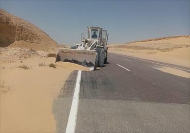 وقال علي حمادة، رئيس المدينة، إنه جرى الدفع بالمعدات الثقيلة لرفع تراكمات الرمال بالطريق الدولي الذي يقع على بعد 30 كيلو مترا من المدينة اتجاه أبوزنيمة، بمساعدة معدات مصنع جبس سيناء، والتي تكونت نتيجة التقلبات المناخية خلال الأيام الماضية، ونشاط حركة الرياح، مؤكدًا أن استمرار تراكم الرمال على الطرق يتسبب في اندثارها وضياع معالمها.