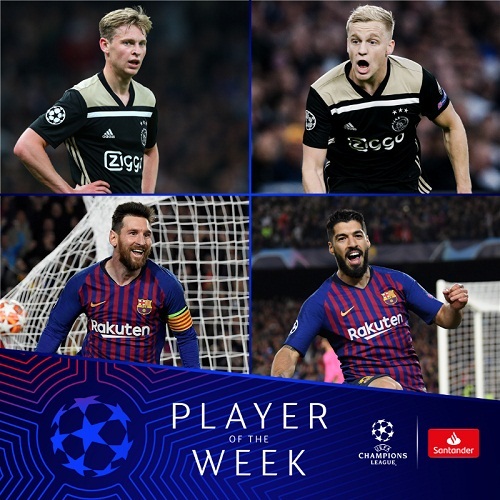 أعلن الاتحاد الأوروبي لكرة القدم "يويفا" عن المرشحين لجائزة أفضل لاعب في ذهاب نصف نهائي دوري أبطال أوروبا.