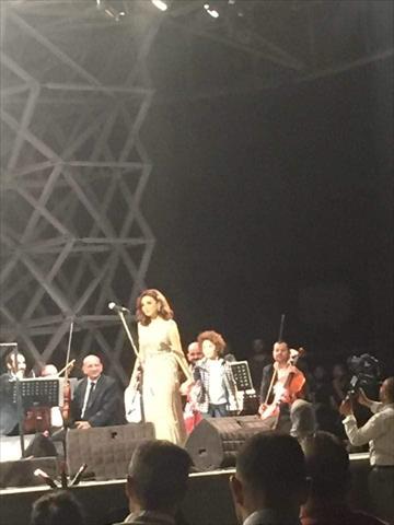 وعقب تقديمها أغنية "حتة ناقصة"، فاجئت انغام جمهور الحفل بحضور شخص مميز بالنسبة لها اليوم معها وهو الطفل "ياسين" ابن شقيقتها الراحلة غنوة، الذي قدمته للجمهور ووصفته قائلة "ده حتة من قلبي".