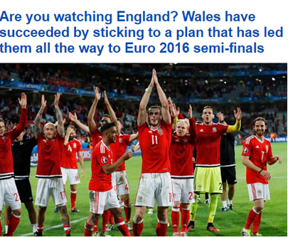 الصحيفة أكدت أن منتخب ويلز خسر امام الإنجليز في دور المجموعات للبطولة ، الا أنه تجاوز الأمر وتأهل إلى الأدوار الأقصائية حيث يتألق حالياً ، فيما لم يستفيد منتخب "الأسود الثلاثة" من عوامل عدة منها توافر الأسماء الكبيرة لتحقيق شيء في فرنسا .