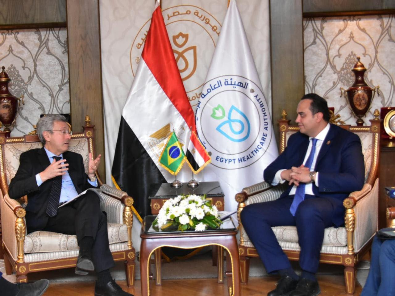 استقبل الدكتور أحمد السبكي رئيس الهيئة العامة للرعاية الصحية والمشرف العام على مشروعي التأمين الصحي الشامل وحياة كريمة بوزارة الصحة والسكان، سفير البرازيل لدى القاهرة باولينو فرانكو دي كارفاليو نيتو، والسكرتير الثاني للسفارة فرناندو باستوس، وذلك بالمقر الرئيسي لهيئة الرعاية الصحية.