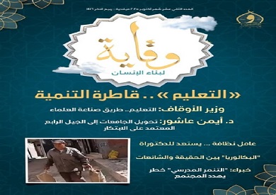 أصدرت وزارة الأوقاف العدد الثاني عشر من مجلة «وقاية» لتسليط الضوء على أبرز الملفات المتعلقة بالتعليم، الجامعي وقبل الجامعي، بالتزامن مع بداية العام الدراسي الجديد 2025 - 2026 م، وذلك في إطار جهودها المستمرة لتعزيز الوعي المجتمعي وترسيخ قيم بناء الإنسان، تحت قيادة وزير الأوقاف، الدكتور أسامة الأزهري.
