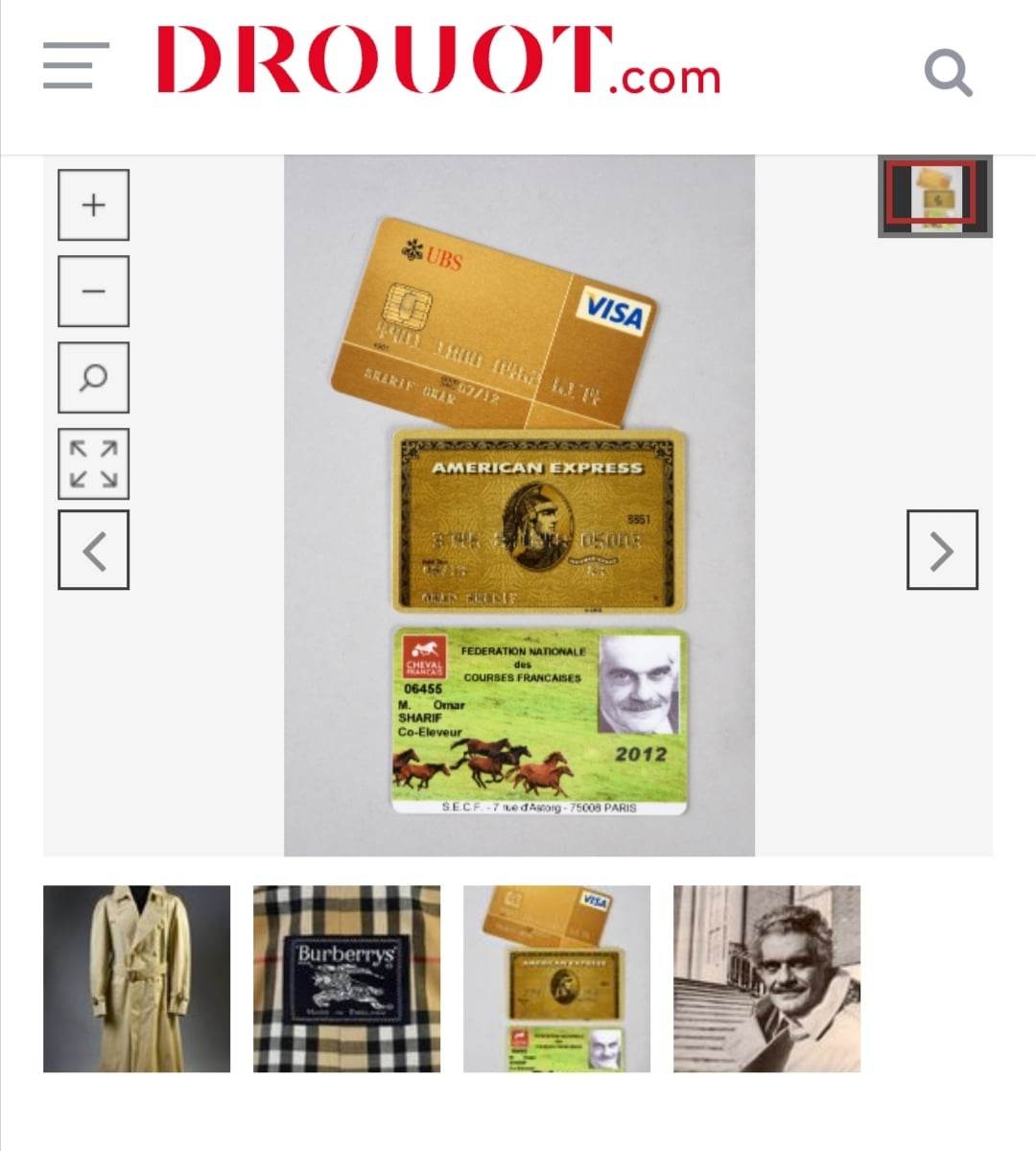عرض موقع تطبيق المزادات "دوروت" الفرنسي، مقتنيات شخصية للفنان الراحل عمر الشريف، عبر مزاد علني لمعرض "Coutau-Béga" في العاصمة الفرنسية باريس.