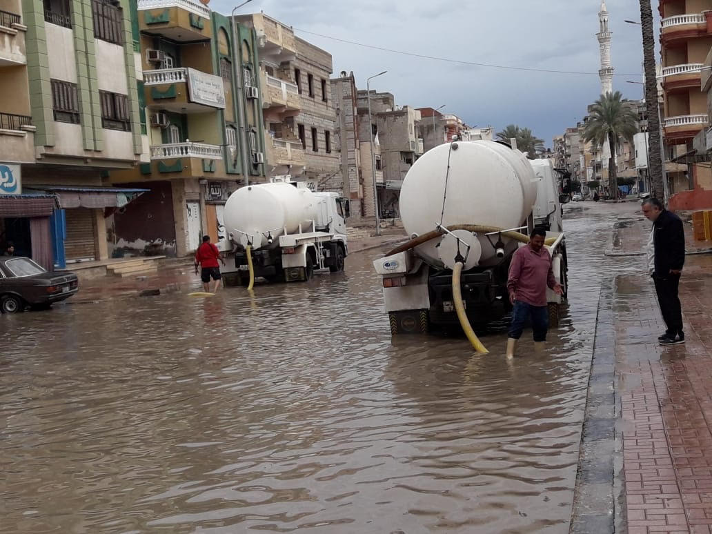 وأشرف اللواء مصطفي محمد مصطفي رئيس الإدارة المركزية لديوان عام المحافظة واللواء أسامة أحمد عَفش رئيس مركز ومدينة العريش على رأس فريق عمل بشارع الساحل، وتواجد مكثف لفريق الأزمات بالمجلس وشركة المياة مدعوم بالسيارات المجهزة للكسح بحملة المجلس والشركة.