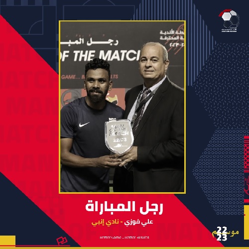 فاز علي فوزي مدافع الفريق الأول لكرة القدم بنادي إنبي بجائزة أفضل لاعب في مباراة فريقه أمام الزمالك والمقدمة من الجولة الرابعة للدوري.