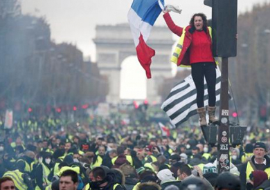 يزداد المشهد الفرنسي تفاقما يوما تلو الآخر إثر تصاعد احتجاجات حركة "السترات الصفراء"، التي اجتاحت أغلب المدن الفرنسية خلال الأسابيع الماضية للتنديد بزيادة أسعار الوقود وغلاء المعيشة، ونظمت الحركة، أمس، ثالث مظاهرة لها في مختلف أنحاء البلاد، وتصاعدت الاشتباكات بين المتظاهرين وشرطة مكافحة الشغب، حيث اعتقلت الشرطة نحو 205 أشخاص بسبب أعمال التخريب، فيما أصيب نحو 80 شخصا بينهم 14 من عناصر الشرطة، كما تم إغلاق 19 محطة على الأقل لمترو الأنفاق وسط باريس في ظل تواصل الاشتباكات العنيفة في مختلف أنحاء العاصمة.