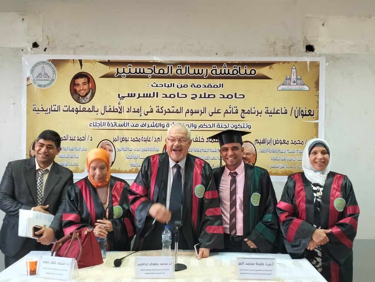 ناقش حامد السرسي، الباحث بقسم الإعلام وثقافة الأطفال بكلية الدراسات العليا للطفولة بجامعة عين شمس، رسالة الماجستير، بعنوان فاعلية برنامج قائم على الرسوم المتحركة في إمداد الأطفال بالمعلومات التاريخية، وذلك تحت إشراف الدكتور محمد معوض إبراهيم أستاذ الإعلام وثقافة الأطفال بكلية الدراسات العليا للطفولة بجامعة عين شمس، والدكتور أحمد عبد الحميد محمد مدرس الإعلام بقسم الإعلام وثقافة الأطفال بكلية الدراسات العليا للطفولة بجامعة عين شمس.