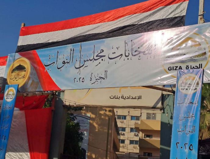 فيما تزين المدخل الرئيسي لعدد من اللجان بأعلام مصر، ومظلة كبيرة من القماش لتنظيم حركة الدخول وتوفير الحماية من الشمس.