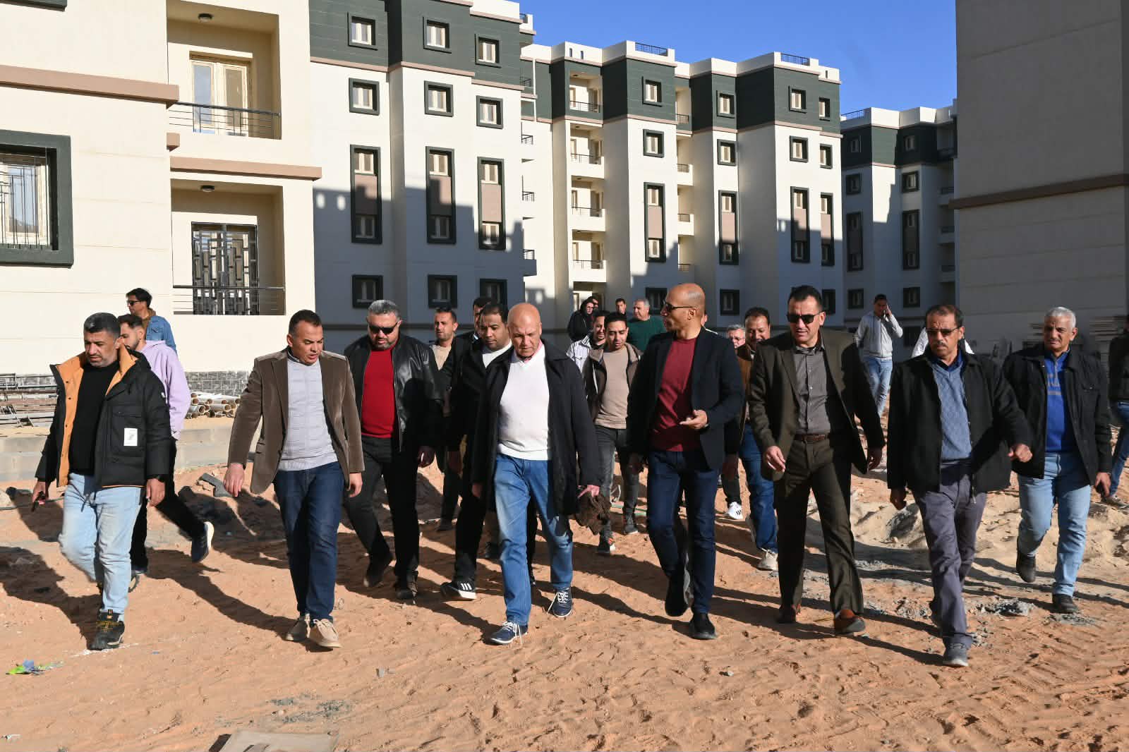 وتضمنت الزيارة تفقد أعمال المرافق والكهرباء والطرق، بمشروع الإسكان الأخضر الذي يضم 109 عمارات سكنية بإجمالي 20130 وحدة، بمساحات75،90 مترًا مربعًا للوحدة، مع متابعة دقيقة لمعدلات التنفيذ للتأكد من الالتزام بالمواصفات الهندسية ومعايير الجودة المتعارف عليها.