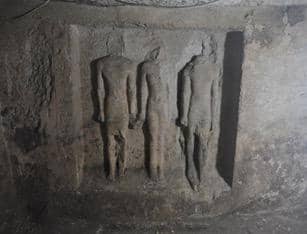 والثانية على شكل مستطيل بأبعاد 1م × 1,5م وعمق 4م تقريباً يؤدى لممر طوله 1م يصل إلى بهو مساحته 5م × 2 م على جدرانه 6 تماثيل جدارية منحوتة فى الصخر مُهشمة الرأس وبعض الأرجل ، كما تبين وجود أناء فخارى بحالة سيئة مُهشم الفوهة وتم ضبط الأدوات المستخدمة فى الحفر.