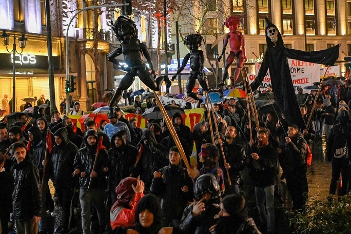 خرجت أعداد كبيرة من المواطنين في اليونان إلى الشوارع، احتجاجا على حالة شبكة السكك الحديدية في البلاد، في أعقاب حادث اصطدام قطارين، والذي أودى بحياة 57 شخصا، على الأقل.