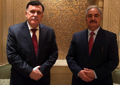 بعد عقد رئيس المجلس الرئاسى الليبى فايز السراج، وقائد الجيش الوطنى المشير خليفة حفتر لقاءً مغلقا فى مدينة أبو ظبى الإماراتية أمس، أكدت مصادر لوكالة أنباء إيطالية أن اللقاء تم بعد ضغط مصرى ــ روسى ــ إماراتى.