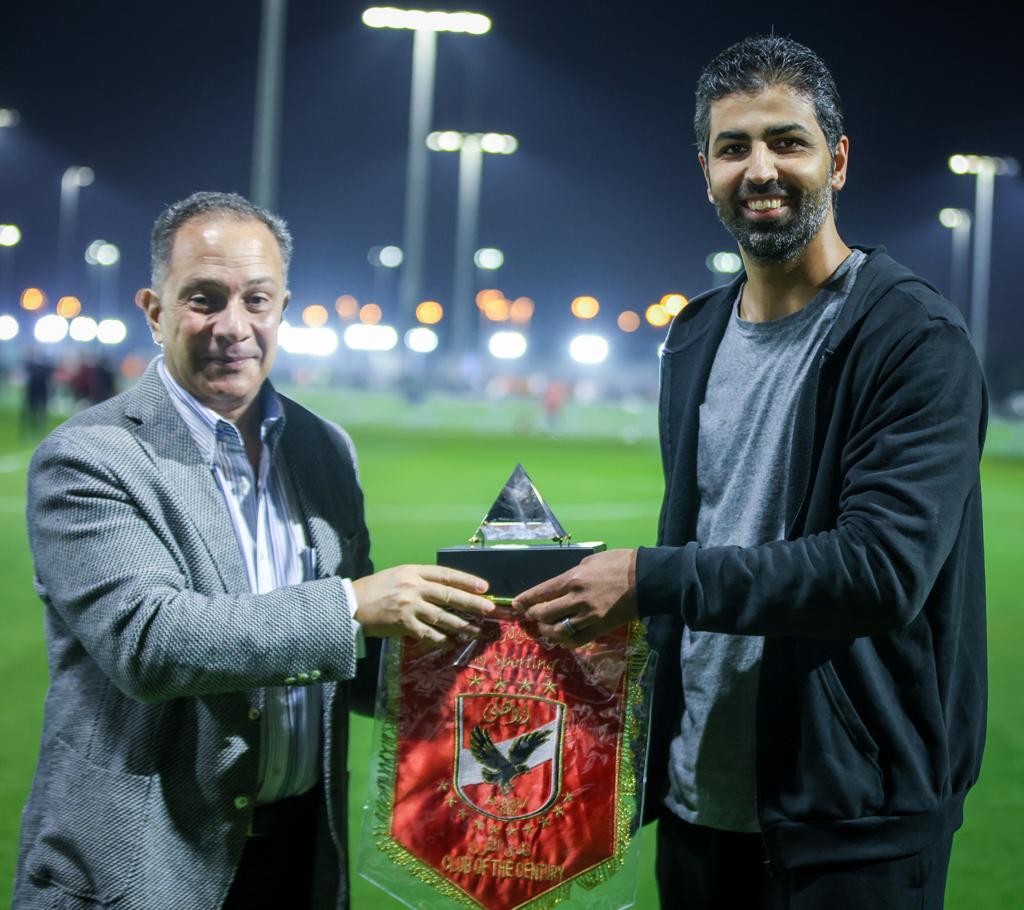 حرص الدكتور مهند مجدي، عضو مجلس إدارة النادي الأهلي رئيس بعثة الفريق الأول لكرة القدم بالإمارات على إهداء السفير المصري بالإمارات، شريف عيسي، درع وعلم النادي، وذلك على هامش حضوره جانبًا من تدريبات الفريق اليوم.