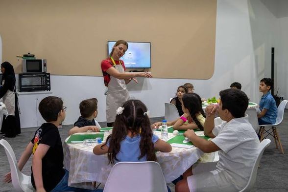 واستمتع الأطفال المشاركون في الورشة، من الفئة العمرية 6 - 10 سنوات، بتجربة إعداد وجبة صحية وتناولها، تحت إشراف الطاهية العالمية سفيتلانا كوزفيتسوفا، حيث صنع الأطفال شطائر الخبز المحمص التي تتضمن أوراق الخس وشرائح الخيار والفلفل الأخضر والجبن، وغلفوها بورق بني، ثم قاموا بوضعها في سلة تشمل الخوخ والمشمش، والبيض المسلوق، ورقائق البطاطا، وانتظروا بفارغ الصبر لحظة تذوق الشطائر اللذيذة التي صنعوها وغلفوها.