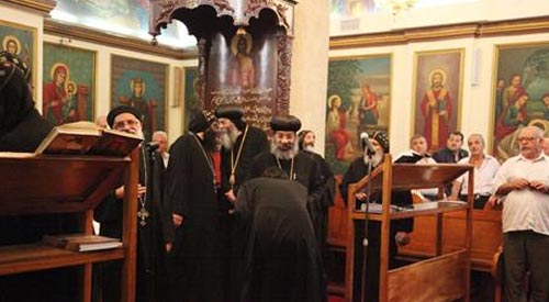 وصل الكنيسة القديس الأنبا أنطونيوس بالقدس الوفد الكنسي المصري، حيث ترأسوا صلاة عشية تطييب الأجساد للقديسين موريس وفيرينا.