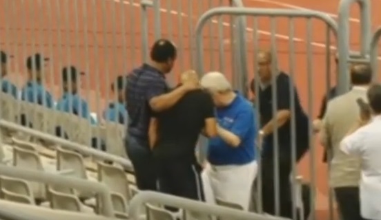 التقطت عدسات كاميرات ملعب " برج العرب" نزول رئيس نادي الزمالك مرتضي منصور اسفل مدرجات الملعب لإستدعاء إسماعيل يوسف مدير الكرة بين شوطي مباراة الزمالك والإسماعيلي .