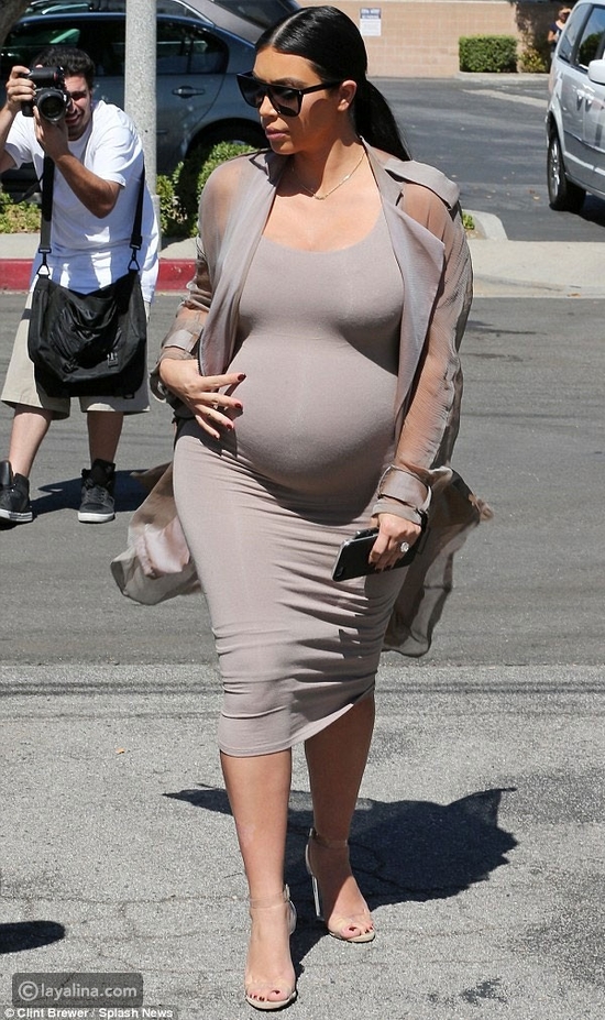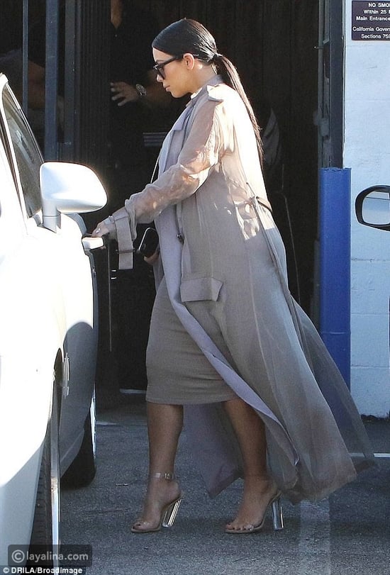 كيم بدت مؤخراً وقد ازداد وزنها بشكل كبير بسبب الحمل إلا أنها مازالت تنتعل الأحذية ذات الكعب العالي الأمر الذي عرضها مؤخراً لموقف محرج أمام جمهورها بسبب كسر كعب حذائها الشفاف أثناء تجولها في أحد شوارع مدينة لوس أنجلوس.