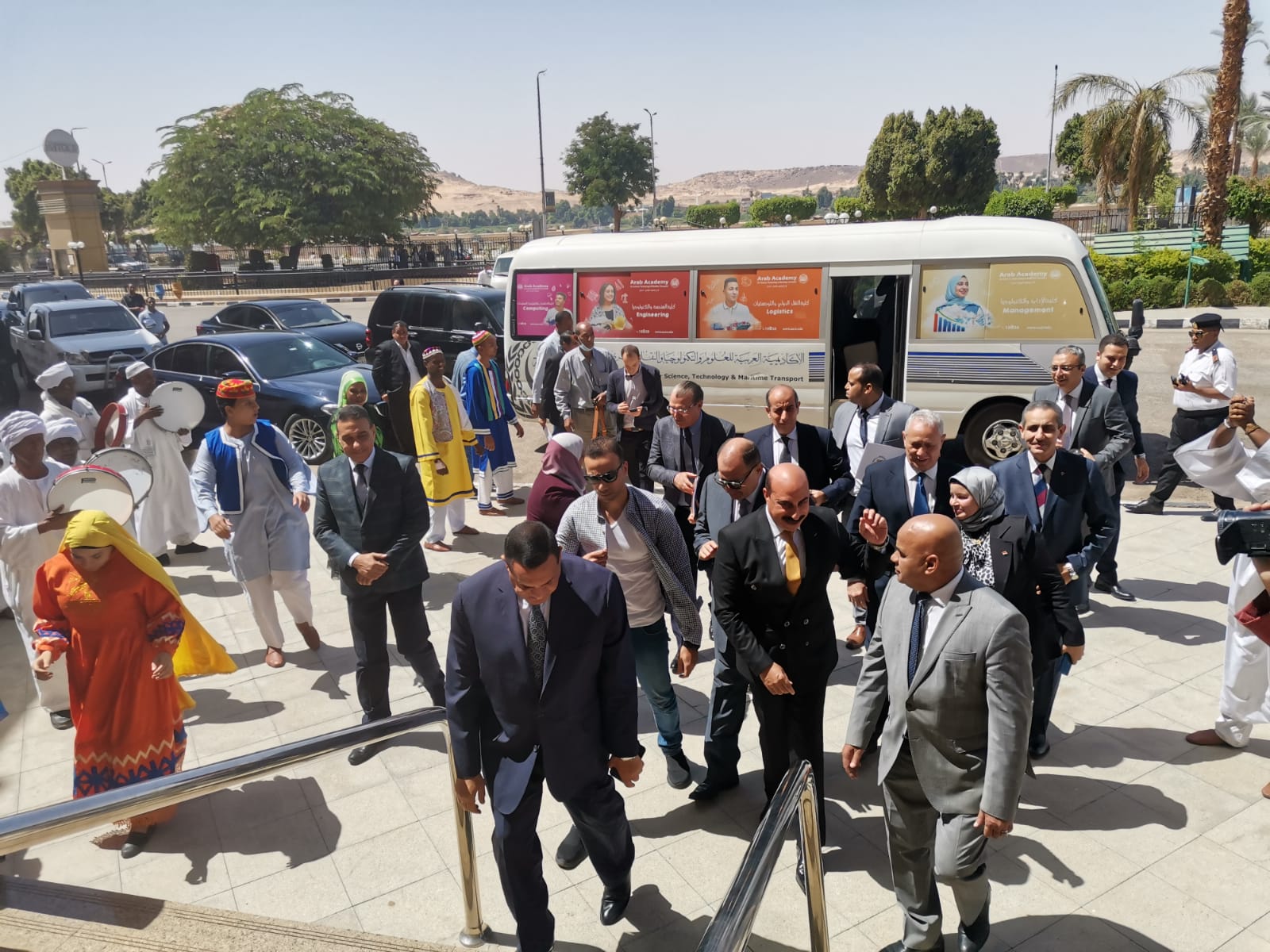 استقبلت فرقة أسوان للفنون الشعبية، وزير التنمية المحلية اللواء هشام آمنة، واللواء أشرف عطية محافظ أسوان، والمستشار مصطفى ألهم محافظ الأقصر، والدكتور طارق رحمي محافظ الغربية، واللواء عصام سعد محافظ أسيوط، صباح اليوم الاثنين، بفندق تيوليب على كورنيش النيل، وأدت الفرقة عرضا استعراضيا فلكلوريا مميزا.