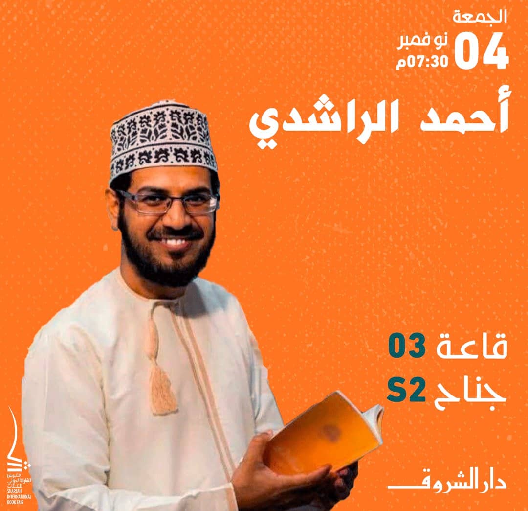 تنظم دار الشروق لقاء مفتوحا مع الكاتب أحمد الراشدي في معرض الشارقة للكتاب 2022، غدا الجمعة، في تمام الساعة السابعة ونصف بتوقيت الشارقة.